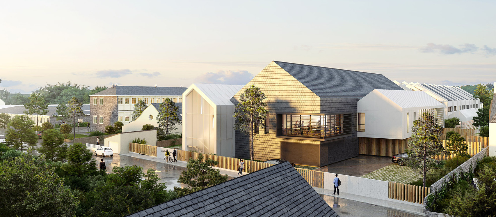 Étude du bardage bois en lames type faux claire-voie sur 3 bâtiments (logements & crèche)