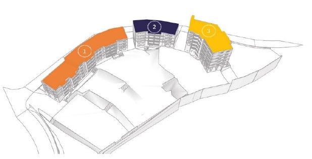 Étude du bardage en panneaux Rockpanel en 6 RAL répartis sur 6 bâtiments (240 logements)